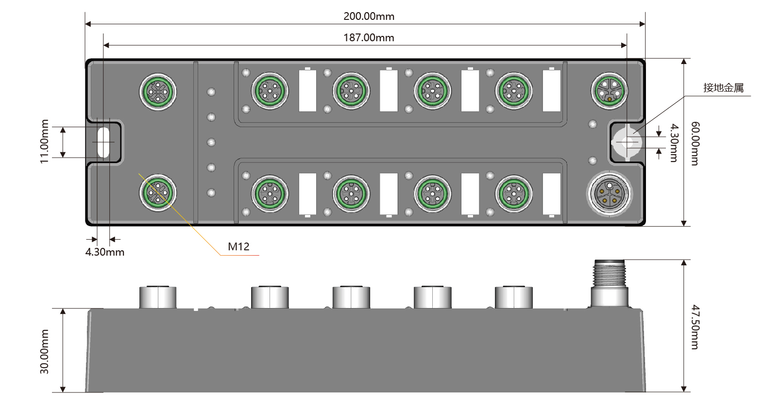 I/O端子:8×M12,A-Code,5P孔